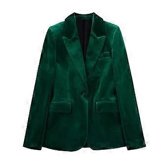 جاكيت بدلة مخملية نسائية أخضر غامق