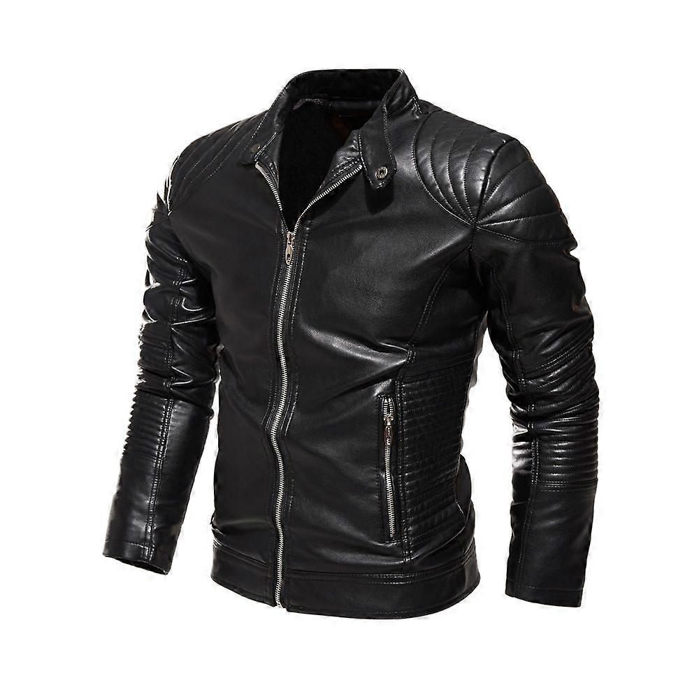 Modern Men's Jacket Leather Solid Color Men's Pu Motorcycle Clothing Fashionable Fleece-Lined Multi-Color Optional Leather Jacket