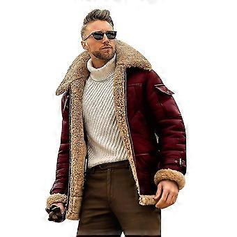 Men's Vintage Suede Jacket Lapel Fur Leather Jacket Cashmere Coat-MXBC
