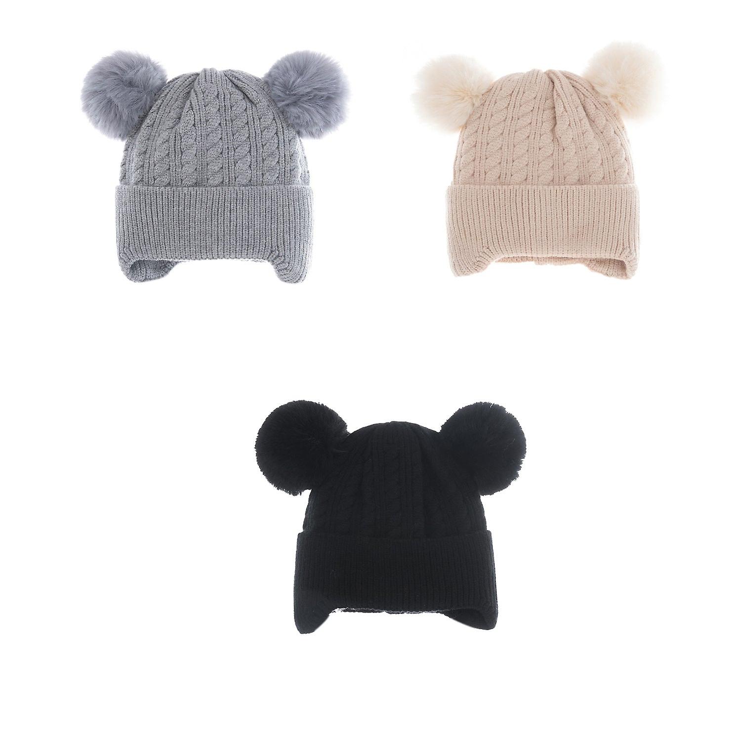 New Autumn And Winter Double Ball Children's Knitted Hat Spot Solid Color Twist Plus Velvet Keep Baby Warm Hat