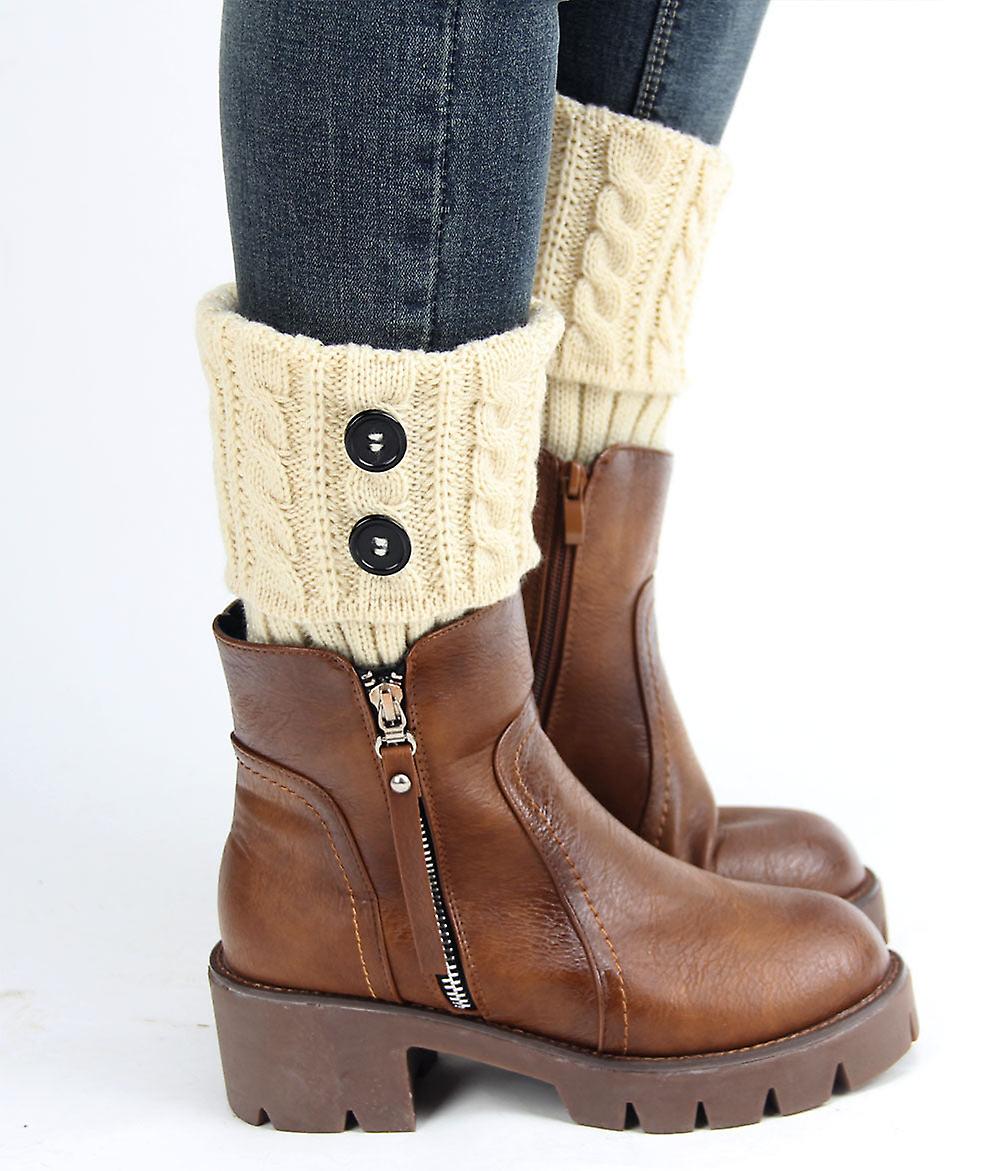 New Foot Sock Women's Knitted Wool Short Twist Turn Button Booties Skinny Thigh Sleeve