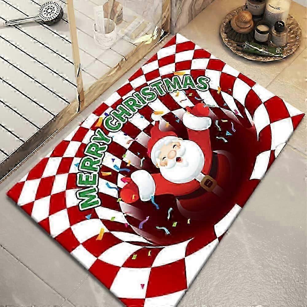 CHRISTMAS SURPRISE DECORATION ------ This Christmas Doormat Is Designed With Santa In Black Hole Vortex And Red & White Plaid Pattern To Create An Optical Illusion.Making You Feel Like You Are In A Black Hole. MATERIAL ------ The Doormat Is Made Of High-Quality Polyester And Includes Nonslip Rubber Backing Which Prevents Moisture Leaks While Keeping The Rug In Place. SAFE AND NON-SLIP ------ Non-Slip Rubber Backing Entry Door Mat Provides Maximum Grip To Prevent You To Skid While You Walk, Ensure It Stay In Place For Safe. Low-Profile Design Glides Under Most Doors Without Catching And Curling. WASH CARE------ It Supports Cleaning 1-2 Times A Week, You Can Use A Vacuum Cleaner And Wipe The Water Stains With A Dry Cloth. For Deep Cleaning, Take The Mat Outside And Spray Off With A Water Hose. Hang To Dry. Please Note: Allow Your Mat To Fully Air Dry Before Next Perfectly Use. WIDELY AVAILABLE ------ Suitable For Placement In Front Of The Door, Including Front Door, Back Door, Bathroom, Living Room, Bedroom, Corridor, Can Be Placed In The Door Or Outside.