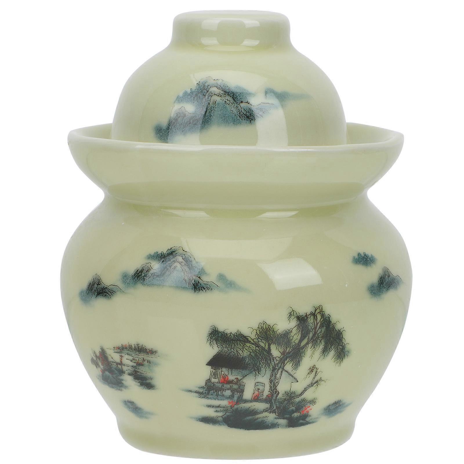Ceramic Pickle Jar with Design for Food Storage, Salted Eggs, Honey, and Kitchen Use