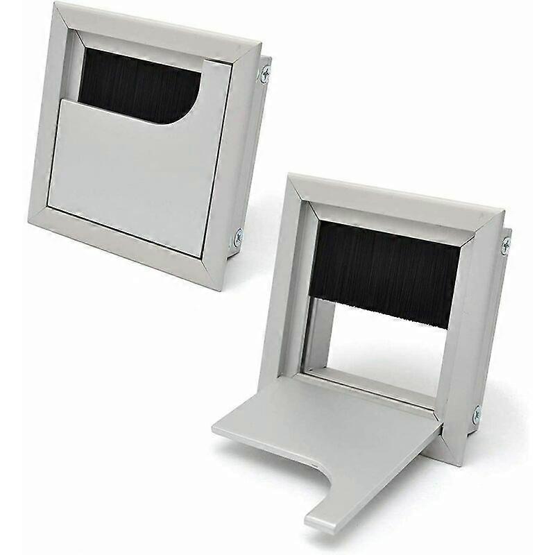 Cable Grommet for Office 80x80mm, Desk Cable Grommet, Home Furniture, Aluminum, Silver, 2 Compartments