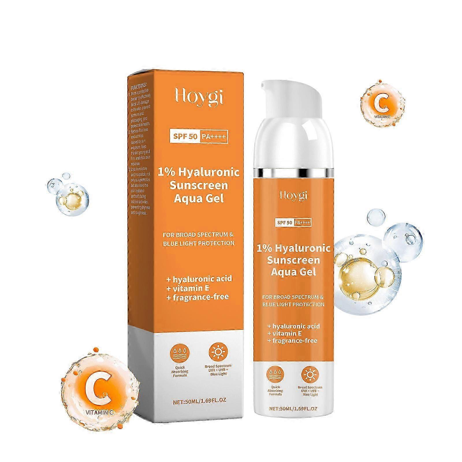 1% Hyaluronic Sunscreen Aqua Gel with SPF 50 & PA++++Broad Spectrum UVA/UVB & Blue Light ProtectionQuick Absorbing with Vitamin E