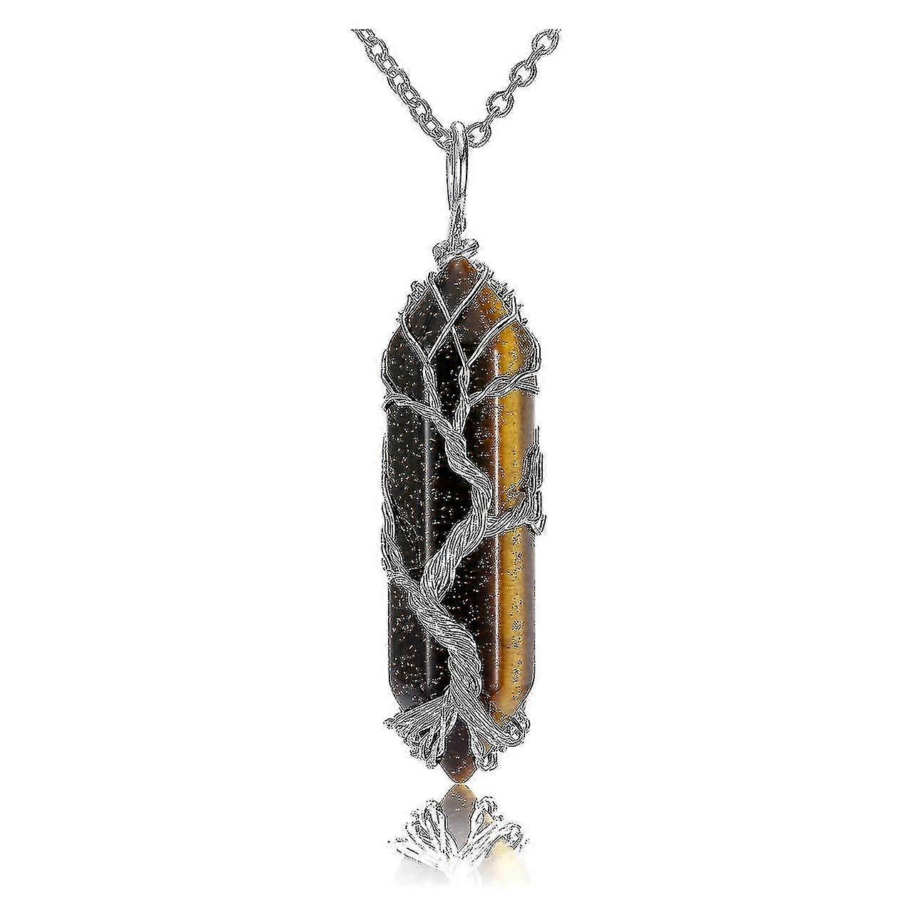 Amethyst Healing Crystal Stone Necklace Tree Of Life Wire Wrapped Natural Hexagonal Crystal Points Pendant Necklace For Women