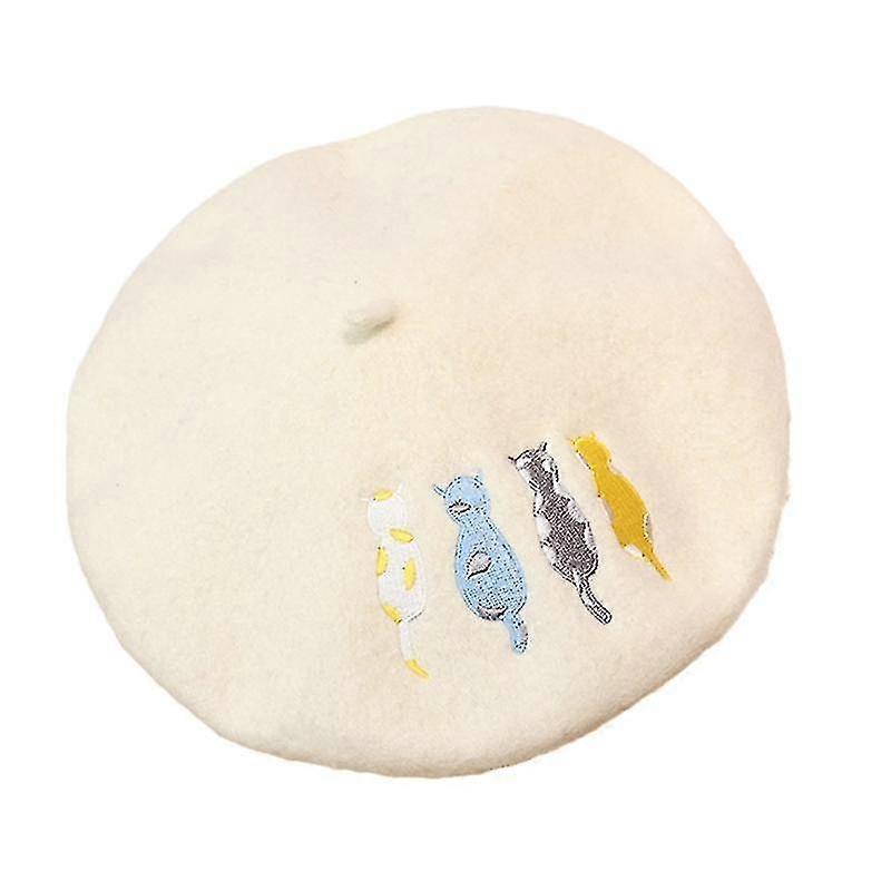 Lovely Four Cats Embroidered Beret Painter Hat Winter Must-have For Women Girl