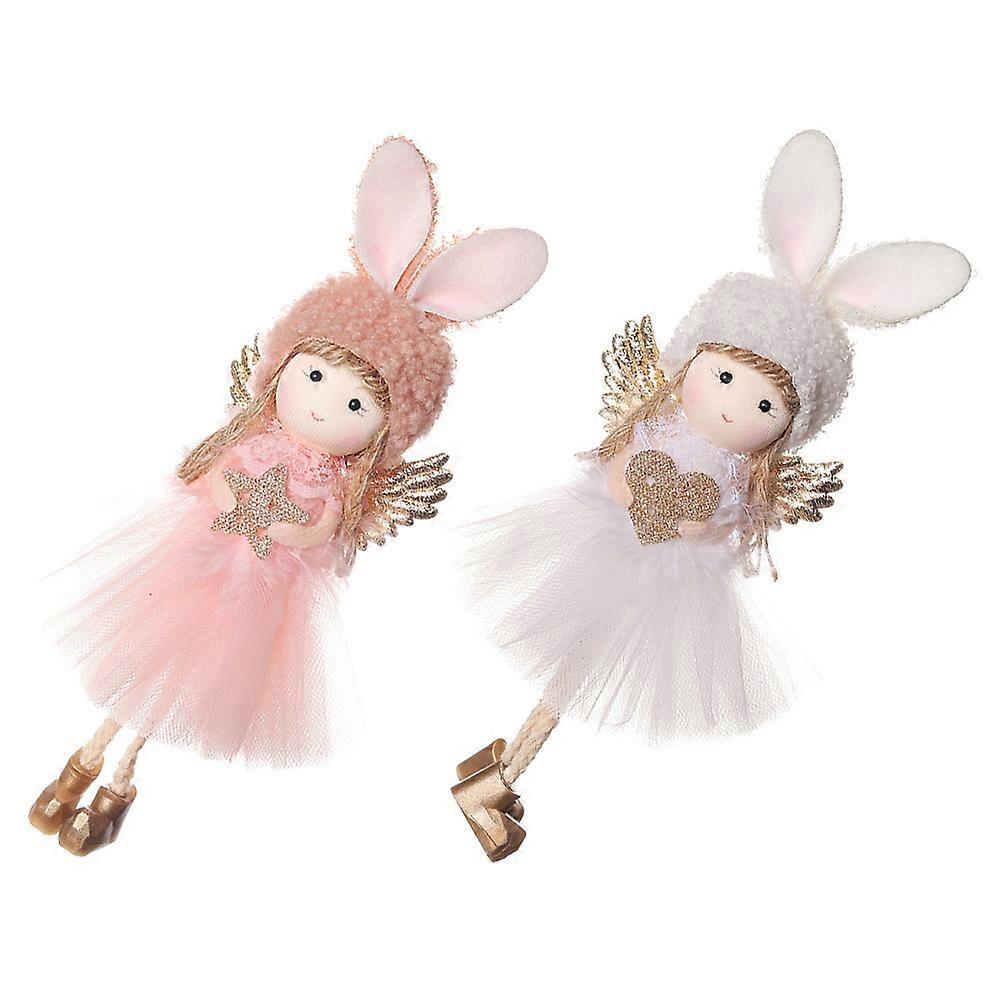 Lovely Girl Doll Hanging Ornament 2Pcs Assorted Color Decorative Item Angel Shape Ideal For Christmas Decoration And Photography Sessions