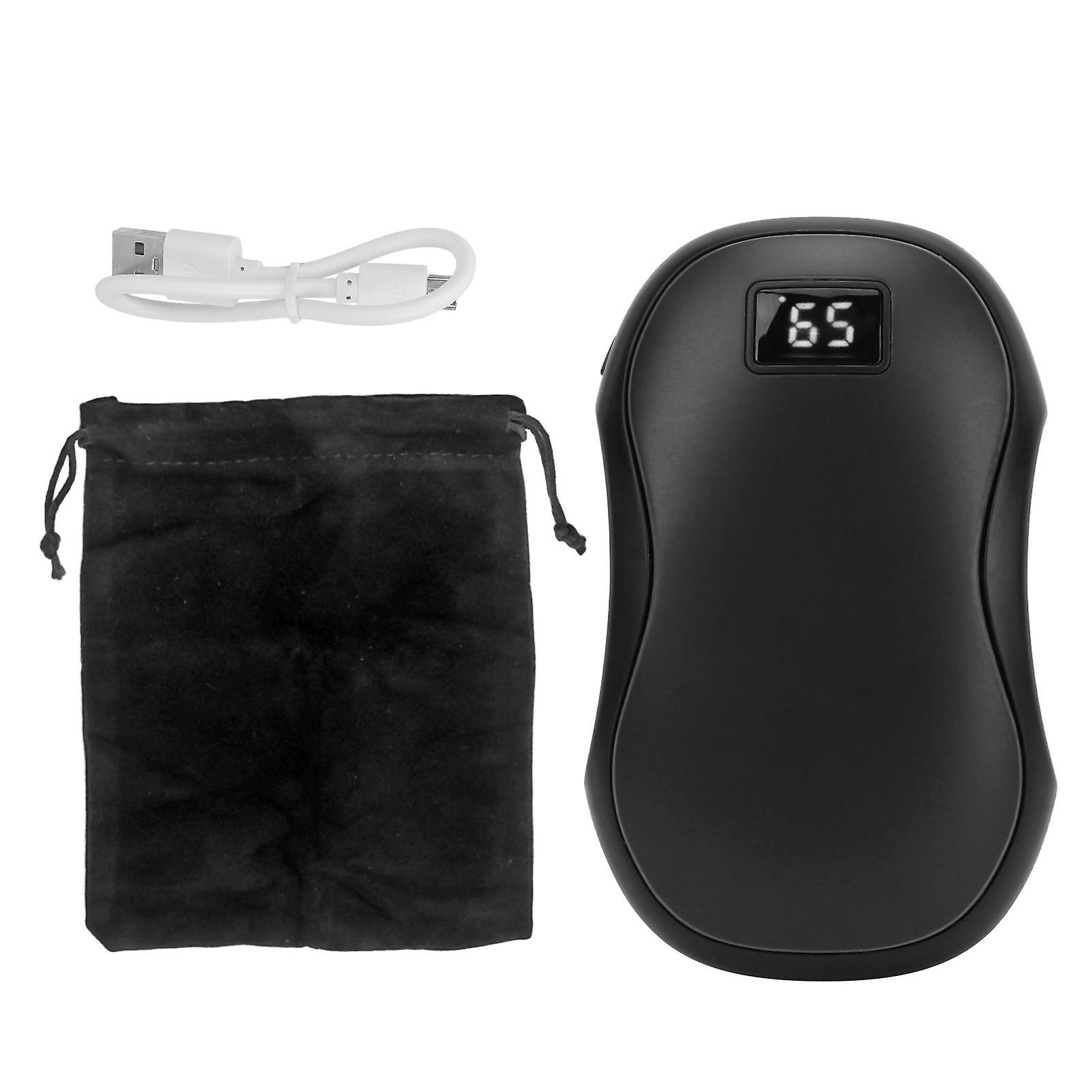 Electric Hand Warmer Rechargeable Power Bank Double Side Heating Display 6000mAh Pocket Size Hand Heater for Winter Black