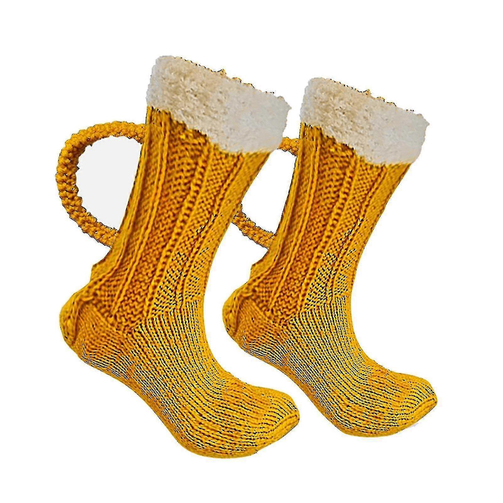 3d Beer Mug Socks Cute Unisex Funny Novelty Yellow Knit Socks Winter Warm Thick Floor Sock For Men