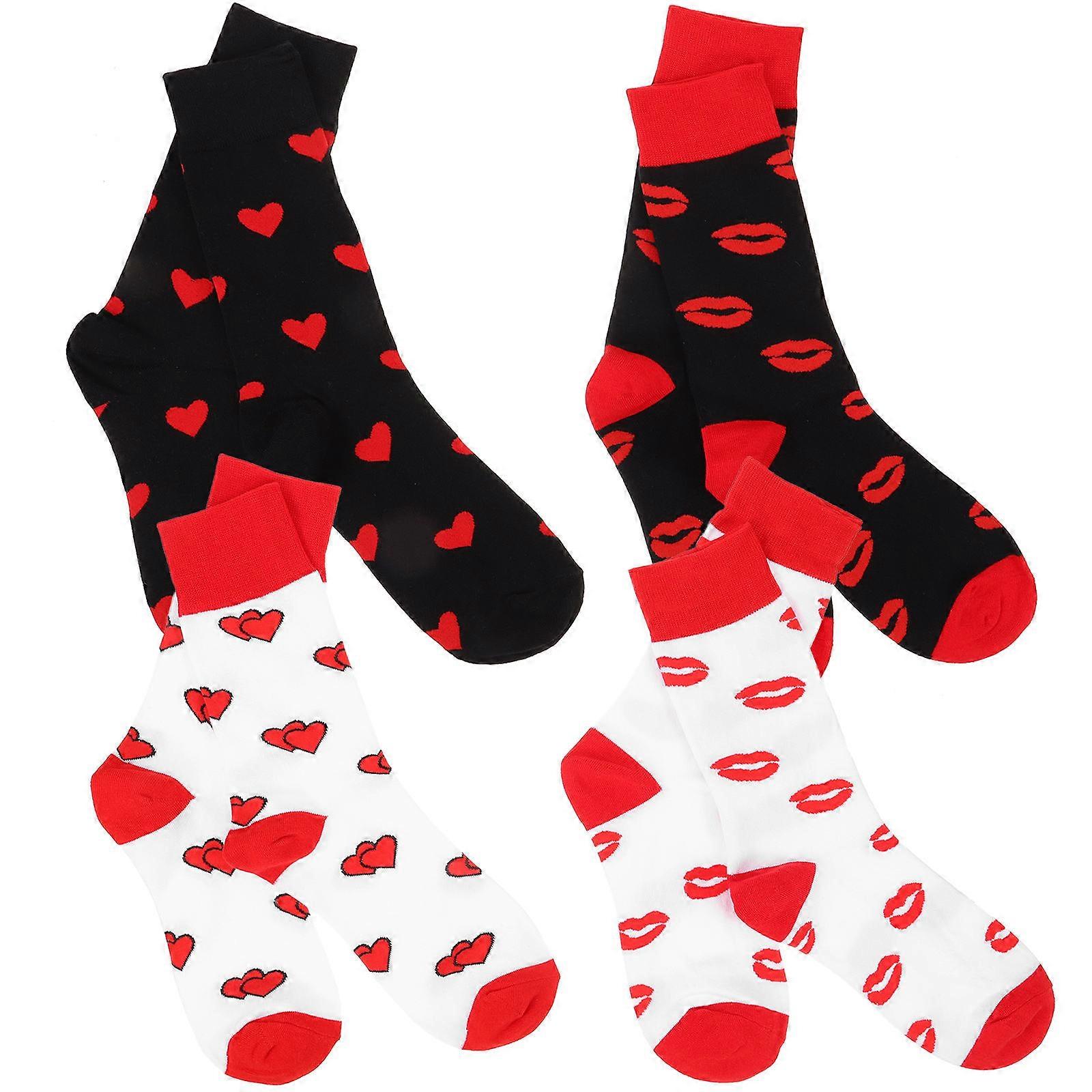 Cute Socks Valentine Day Crew Socks Breathability Mid-Calf Black 4 Pairs