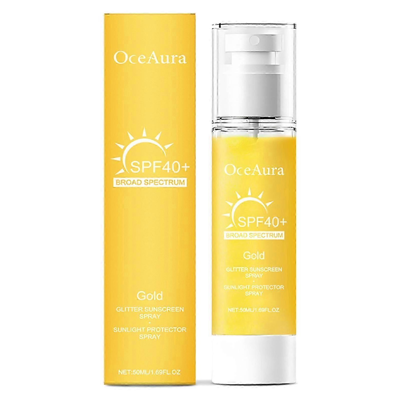 Golden Glitter Sunscreen Spray SPF 40 for Face & Body, Shimmering Broad Spectrum Sun Protection Spray