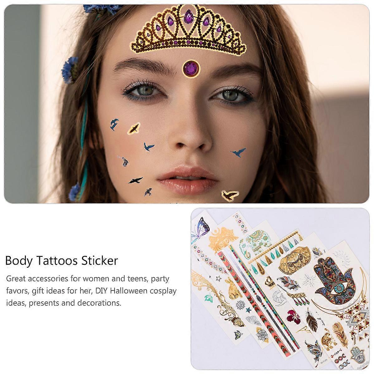 Jewel Face Stickers Temporary Disposable Gold Foil For DIY Halloween Cosplay 12 Sheets