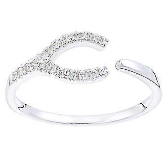 Jewelco London 9ct White Gold Round 10pts Diamond Horseshoe Wishbone Dress Ring
