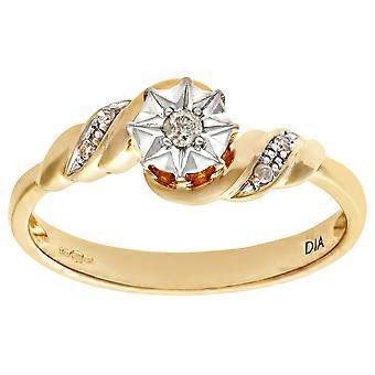 Jewelco London 9ct White Gold Round 5pts Diamond Ribbon Twist Illusion Star Solitaire Engagement Ring