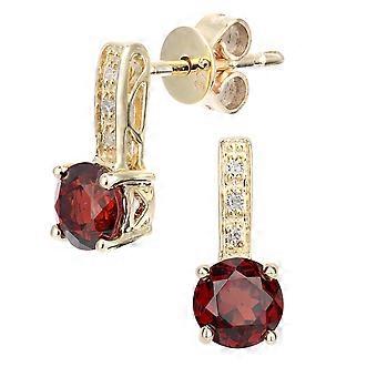 Jewelco London 9ct Yellow Gold Round 3pts Diamond Round 1.3ct Garnet Inverted Lollipop Drop Earrings