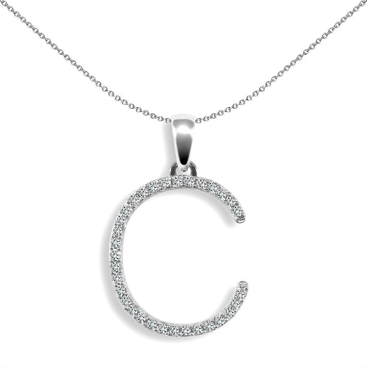 Jewelco London Ladies Solid 9ct White Gold Pave Set Round G SI 0.16ct Diamond Elegant Block Initial ID Charm Pendant