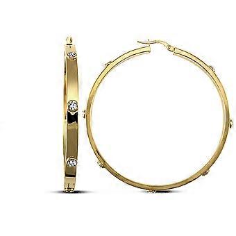 Jewelco London Ladies 9ct Yellow Gold White Round Brilliant Cubic Zirconia Square Tube 4mm Hoop Earrings 53mm