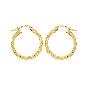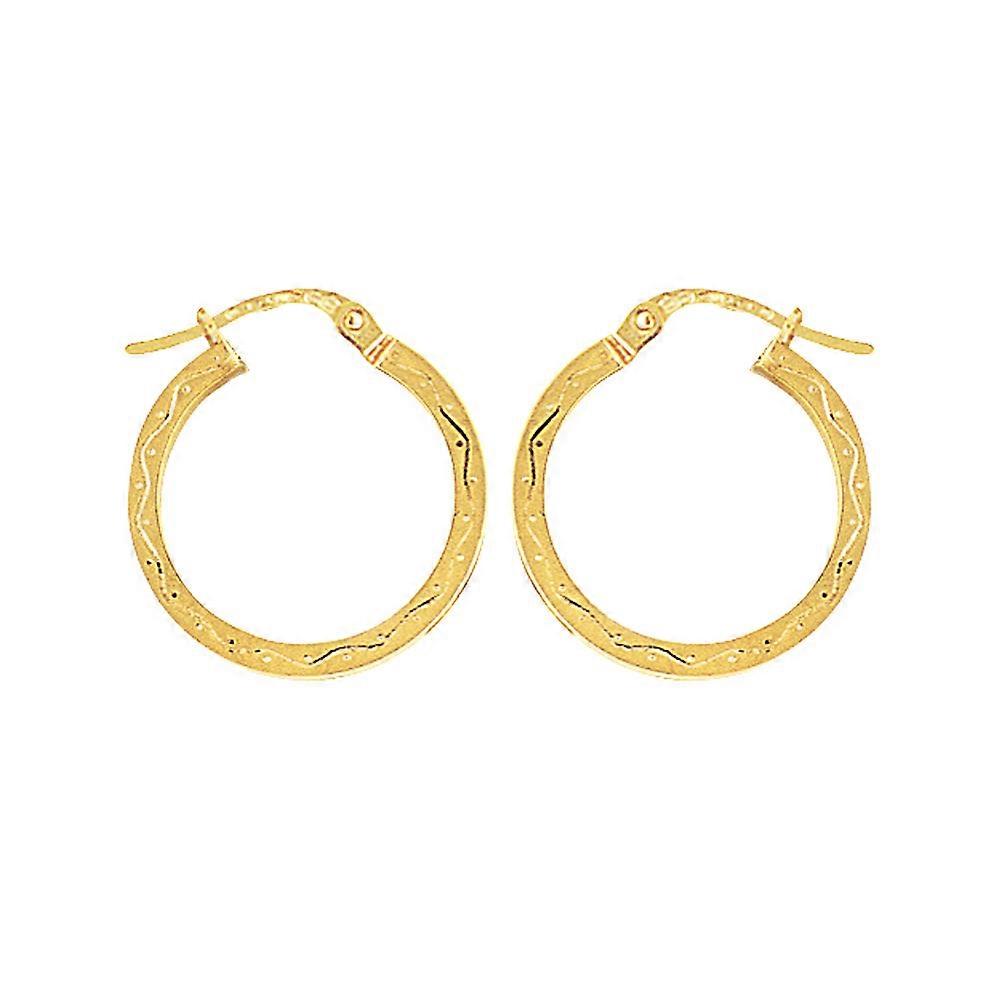 Jewelco London Ladies 9ct Yellow Gold Engraved Square Hoop Creole Earrings 20mm
