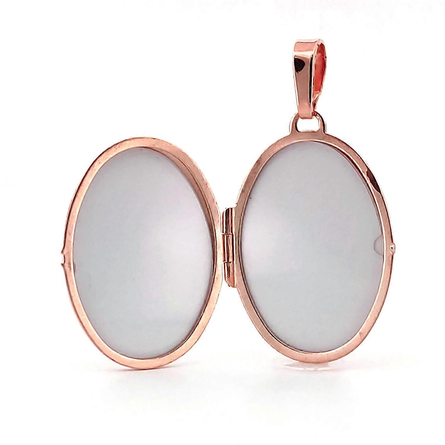 Jewelco London Ladies 9ct Rose Gold Floral Engraved Oval Locket Pendant