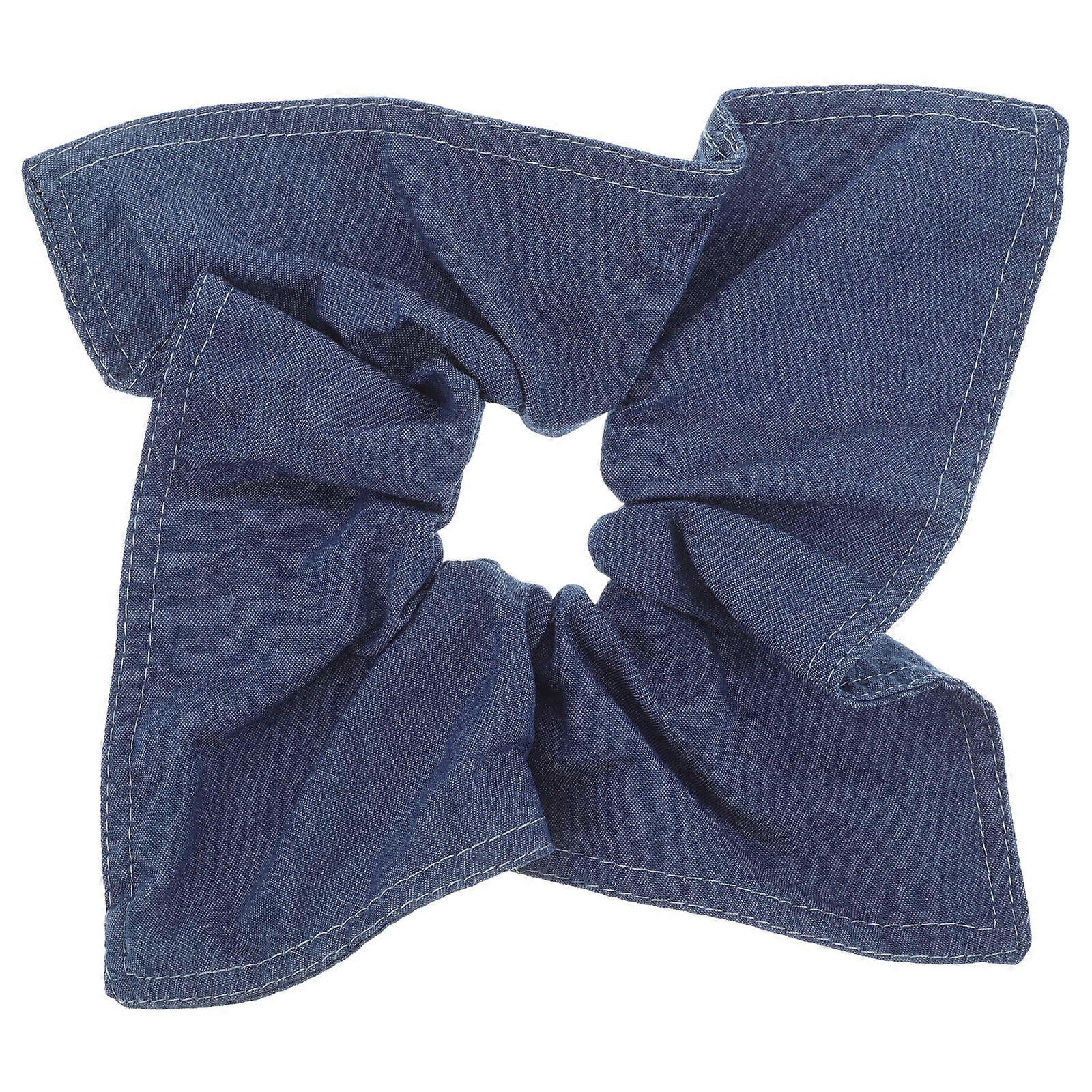 Denim Hair Scrunchie for Women – Thick Hair Tie with Bow Design, Stylish Blue Jeans Fabric Ponytail Holder