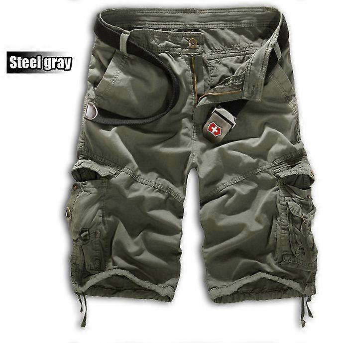 Men Military Pockets Army Cargo Shorts Half Pants Camo Work Bottoms(Steel Grey)