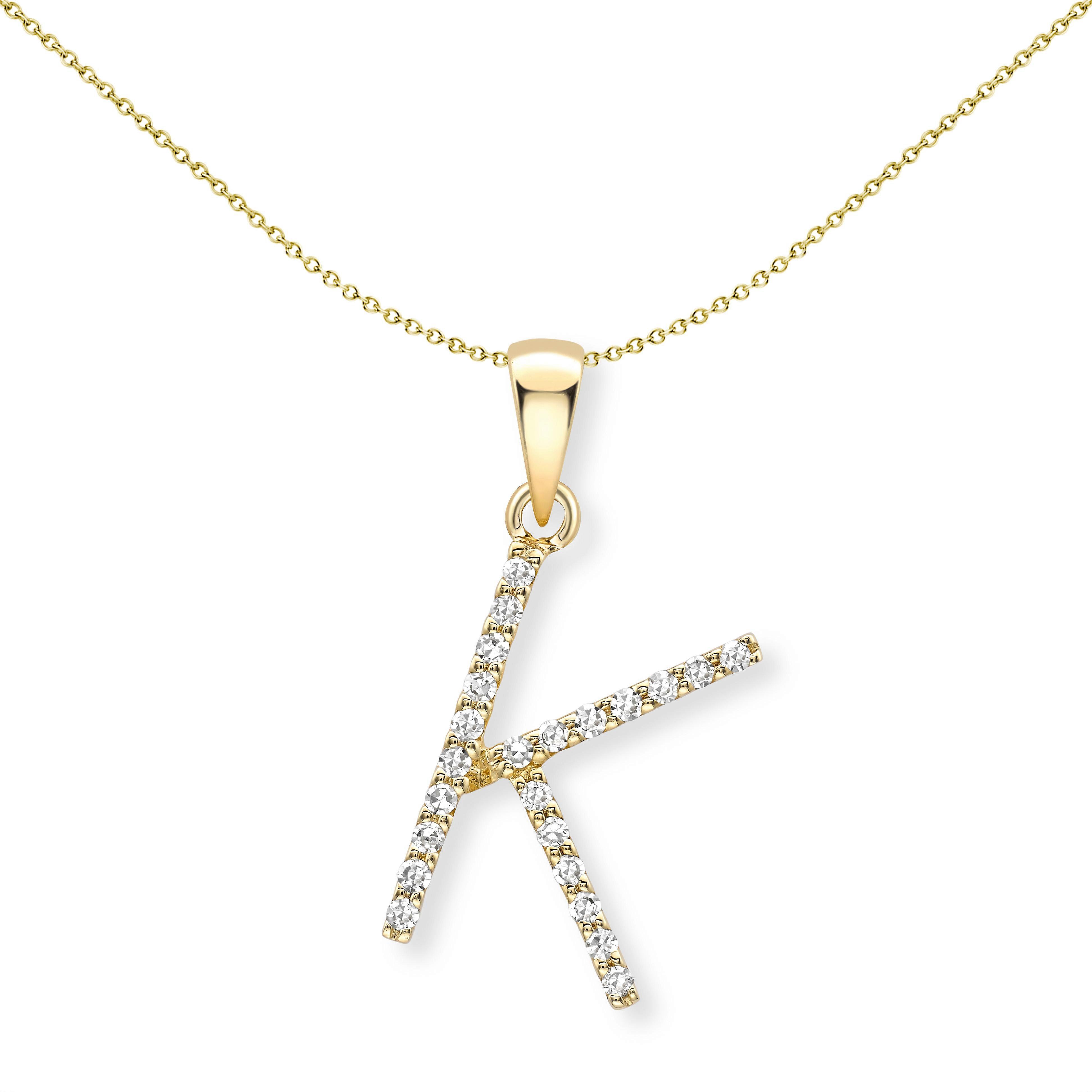 Jewelco London 18ct Yellow Gold Diamond Initial Charm Pendant Letter K 8mm x 17mm