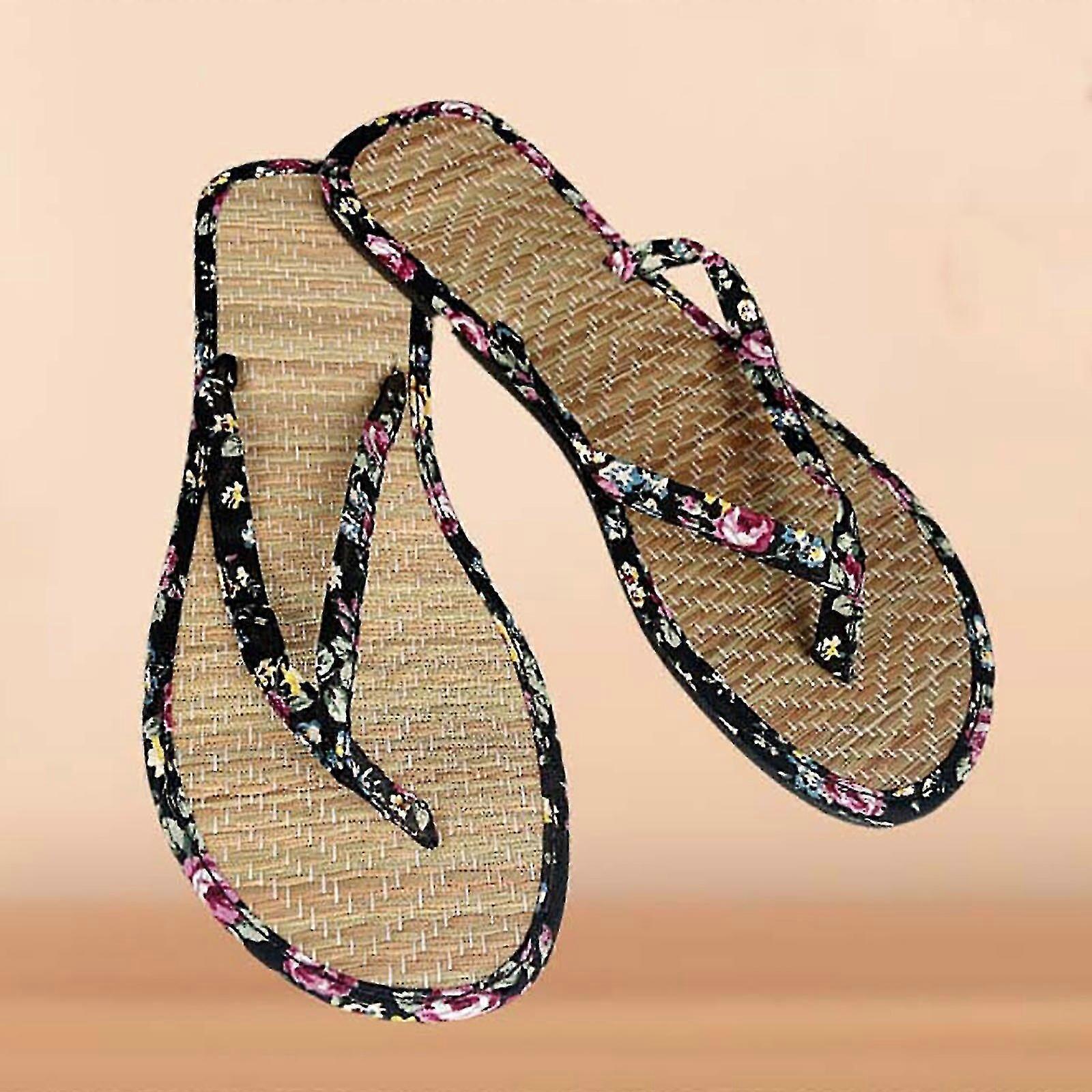 Hot Women Flat Slippers Comfortable Non-slip Sandals Silent Bamboo Rattan Flip Flop Beach Seaside Slippers