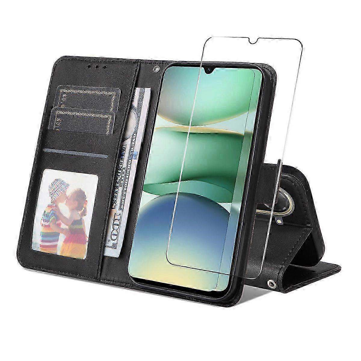 PU Leather Wallet Case with Stand & Tempered Glass Screen Protector for 173.3mm Devices (4G Compatible)