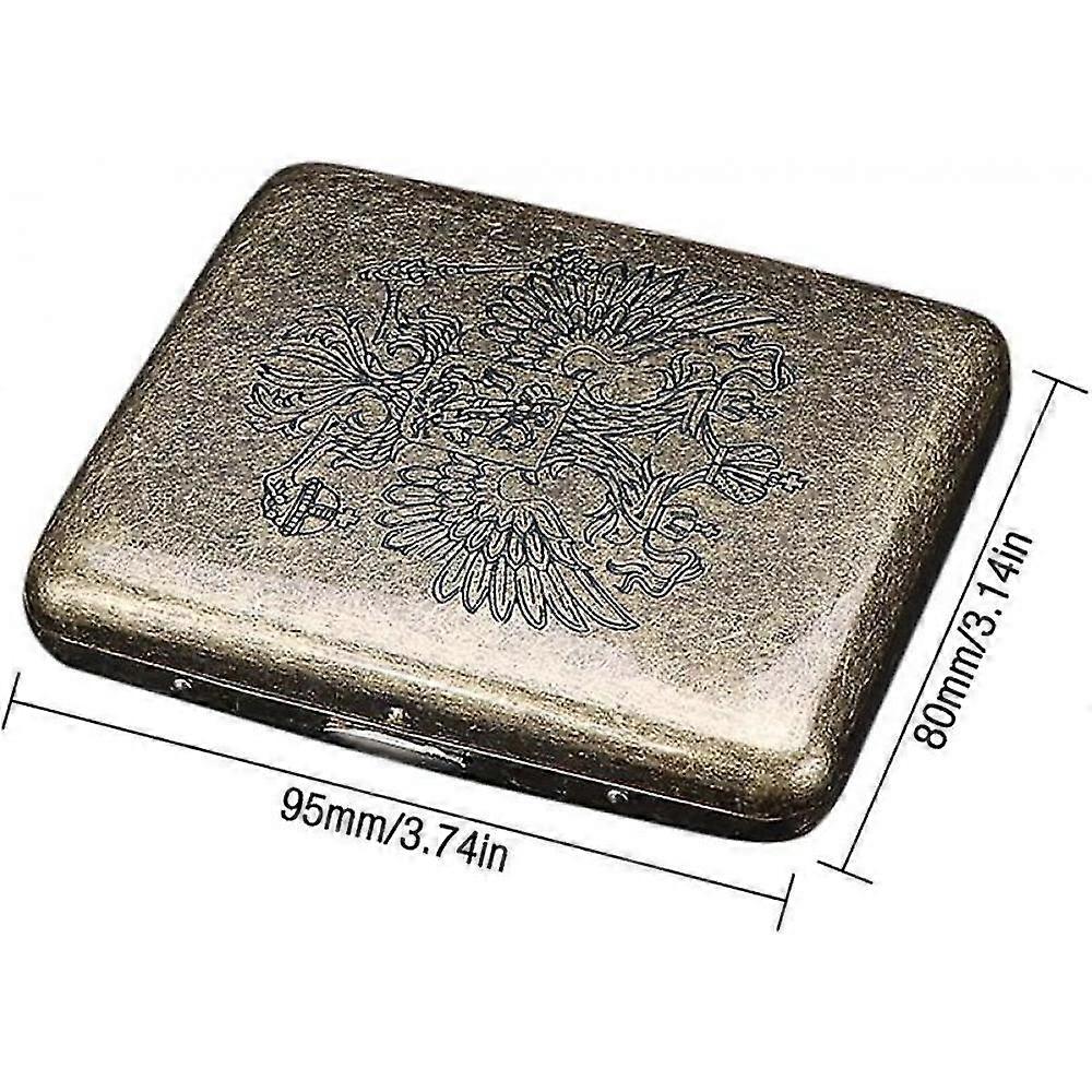 It is made of cold-rolled synthetic metal with anti-extrusion, moisture resistance, pressure resistance and rust resistance, and does not require excessive modification. The classic bronze color shows the true color.[Size and capacity] The size of the cigarette box is 95 * 80 * 20 mm and the weight is 150 g. It has room for 18 to 20 cigarettes with a length of 85 mm.[Open Button] The cigarette box has a spring button design that allows the cigarette box to be opened and closed with one hand. At the same time, the cigarette holders on both sides of the cigarette box can prevent the cigarette from slipping or losing it when opened.[Small and portable]: The retro metal cigarette box is small and portable and can be easily placed in various pockets or pouches. Therefore, it can protect your cigarettes at any time, whether outdoors or indoors.[Best Gifts]: The cigarette box is elegant and beautiful, and is a great choice for giving gifts to dads, friends, husbands or friends. As long as you smoke, you will love this cigarette box. Product Description:100% brand new and high quality!Avoid moisture and cigarette mildew.Internal divider layer is designed to hold 20 oversized cigarettes.Made of high quality aluminum alloy, strong and durable. Lightweight and easy to carry.Elegant, stylish and unique design, very suitable for personal use or as a gift.Specification:Product type: cigarette caseMaterial: metalCapacity: 18-20 cigarettesApplication: cigaretteSize: 95 * 80 * 20mmPackage content:1 cigarette case1.Due to manual measurement, please allow 1-3cm error. Before you buy, please make sure that it does not bother you.2.Due to the difference between different monitors, the picture may not reflect the actual color of the product. Please use the real one as standard. Thank you3. Because different types of cigarettes have different sizes, the number of cigarettes that can be stored need not be 20.4. If you have any questions, please contact us. We are at your service 24 hours