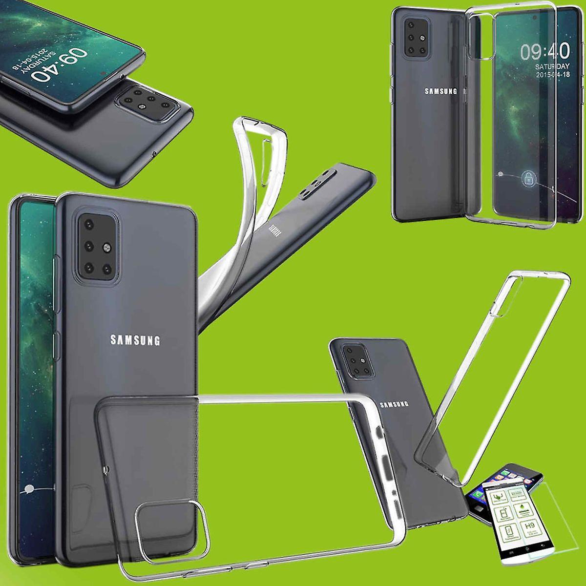 Silikoncase ultra dünn Hülle Handy Tasche Transparent + Hartglas 0,26 mm H9 für Samsung Galaxy A51 A515F