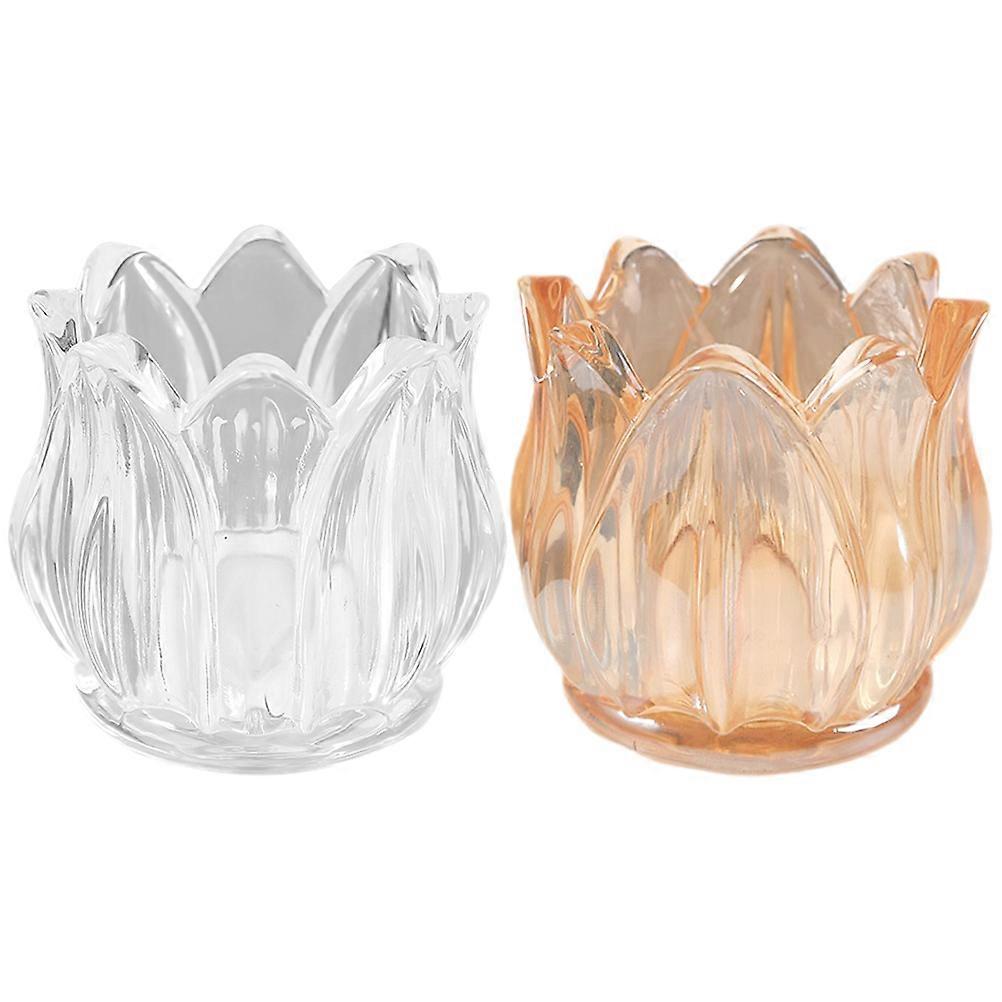 Tealight Holders Glass Simple Design Transparent Tulip Shape 6.5x6.5x6.5cm 2Pcs