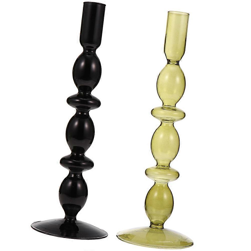 Heavy Candlestick Holders Glass Candlestick Holder Home Centerpiece Decoration Black Flat Bottom Modern Design 2Pcs