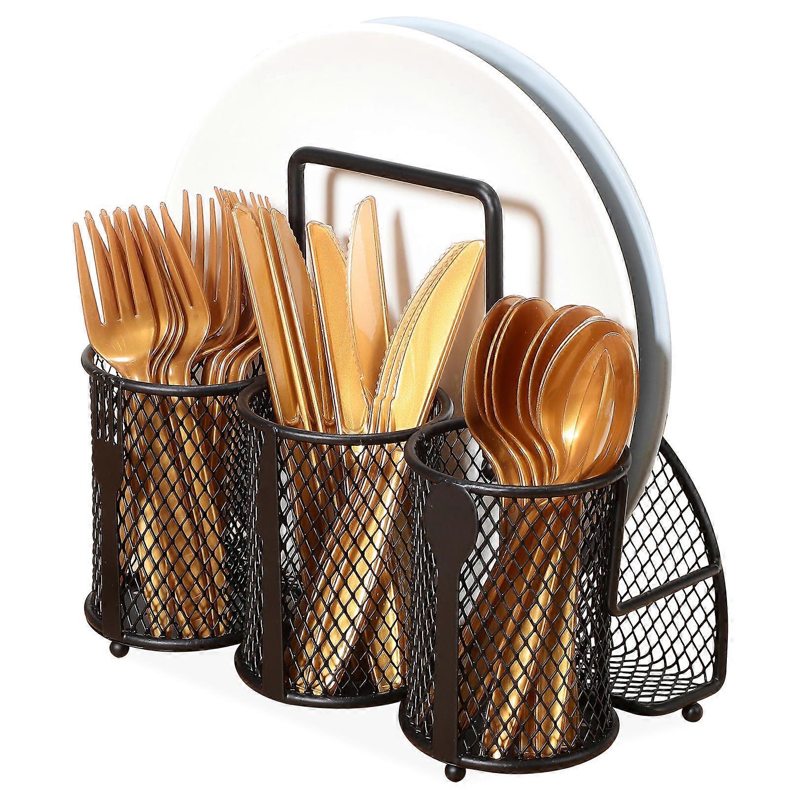 Metal Utensil holder Divided Cutlery Storage Organizer Outdoor Party Picnic Storage Holder