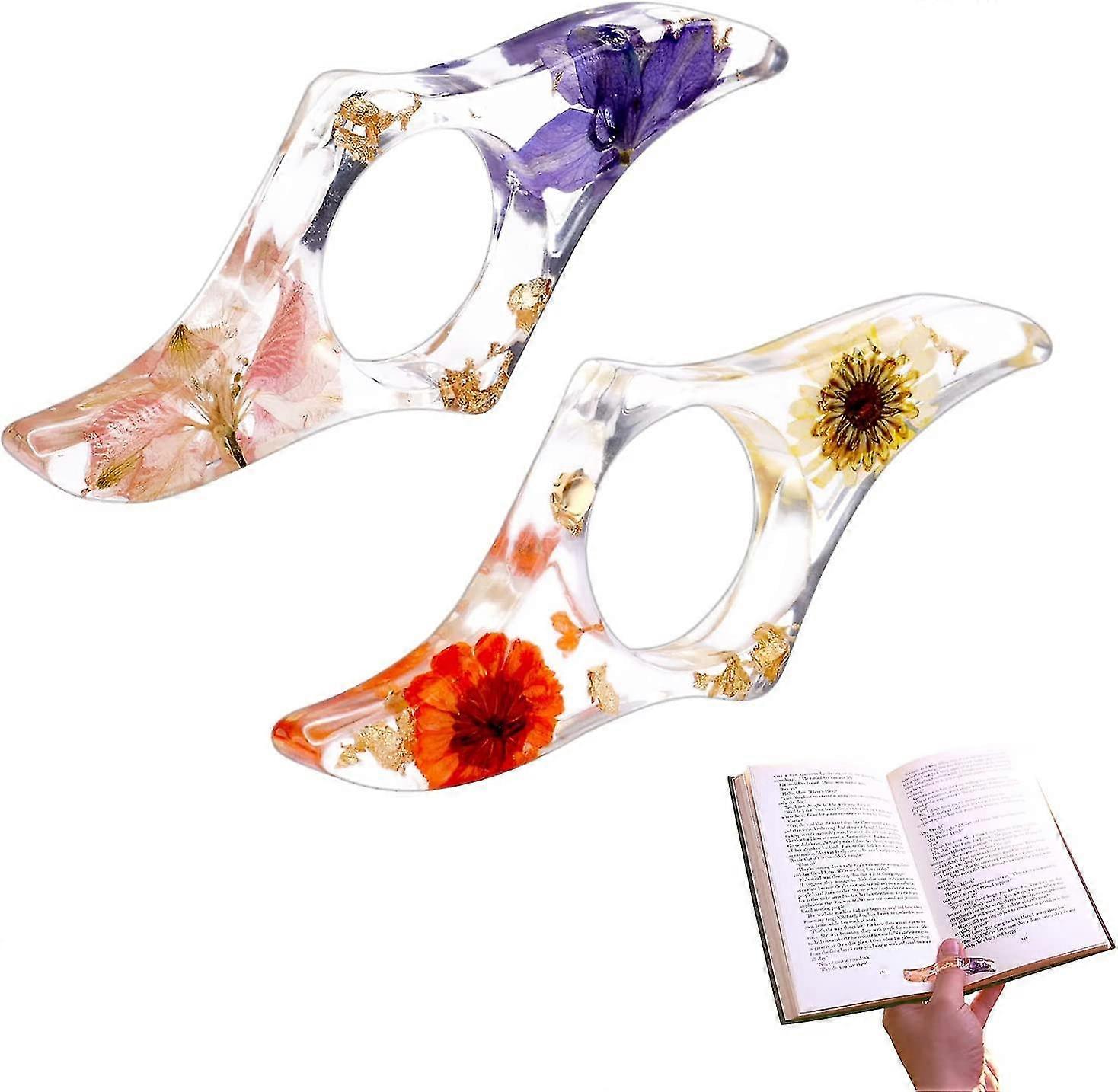 Reading Thumb Holder, Resin Dried Flower Bookmark Transparent Thumb Ring Page Holder Book Reading Accessories For Teachers Students Book Lovers (trans