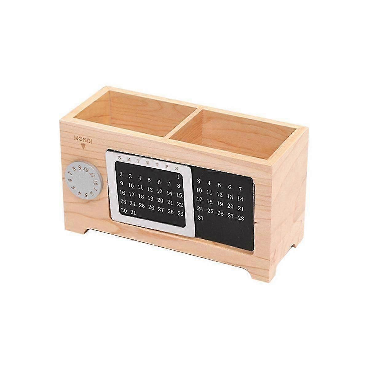 Calendar Pen Holder Multifunctional Desktop Office Storage Box Office Desktop Ornaments Maple Wood