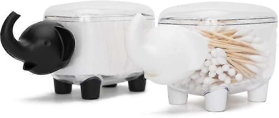 DECORATIVE AND FUNCTIONAL: This cute sheep cotton ball holder is easy to use and nice for bathroom counter top or vanity table. Q-tips, dental flossers , nail cutters, cotton balls, glosses, hair ties, clips, tea bag and so on . Keeps the counter tops neat and organized. It's not just adorable, it's necessary. SIZE: Box size : 3.5 x 2.2 x 2.2 ", Total Size 5 x 2.7x 2.7 inches . It is small but still can hold a big amount of toothpicks. 2 pack black and white for your reference, one for bedroom ,other for bathroom, meets your needs. MTERIAL :Clear Acrylic . Non-toxic and odourless. Clear plastic can help you more easier to see what inside in this Jars. WITH 4 LEGS : It stand firm. Please note: Toothpicks and q-tips are NOT included . PACKAGE: 2 Pack cotton ball holder cute elephant for black and white.