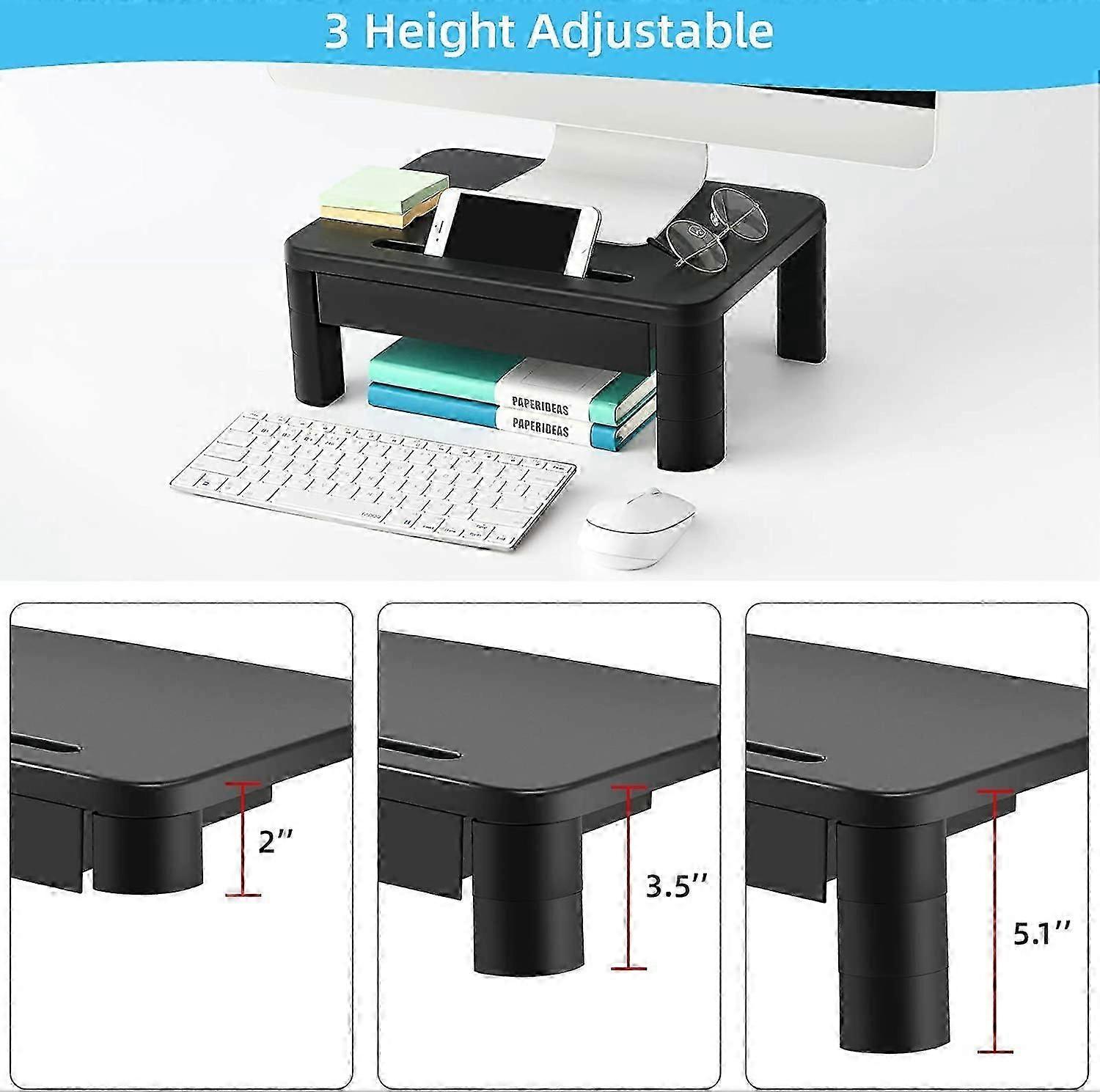 Computer Stand Riser with Drawer 3 Height Adjustable Monitor Stand Riser Built with Phone