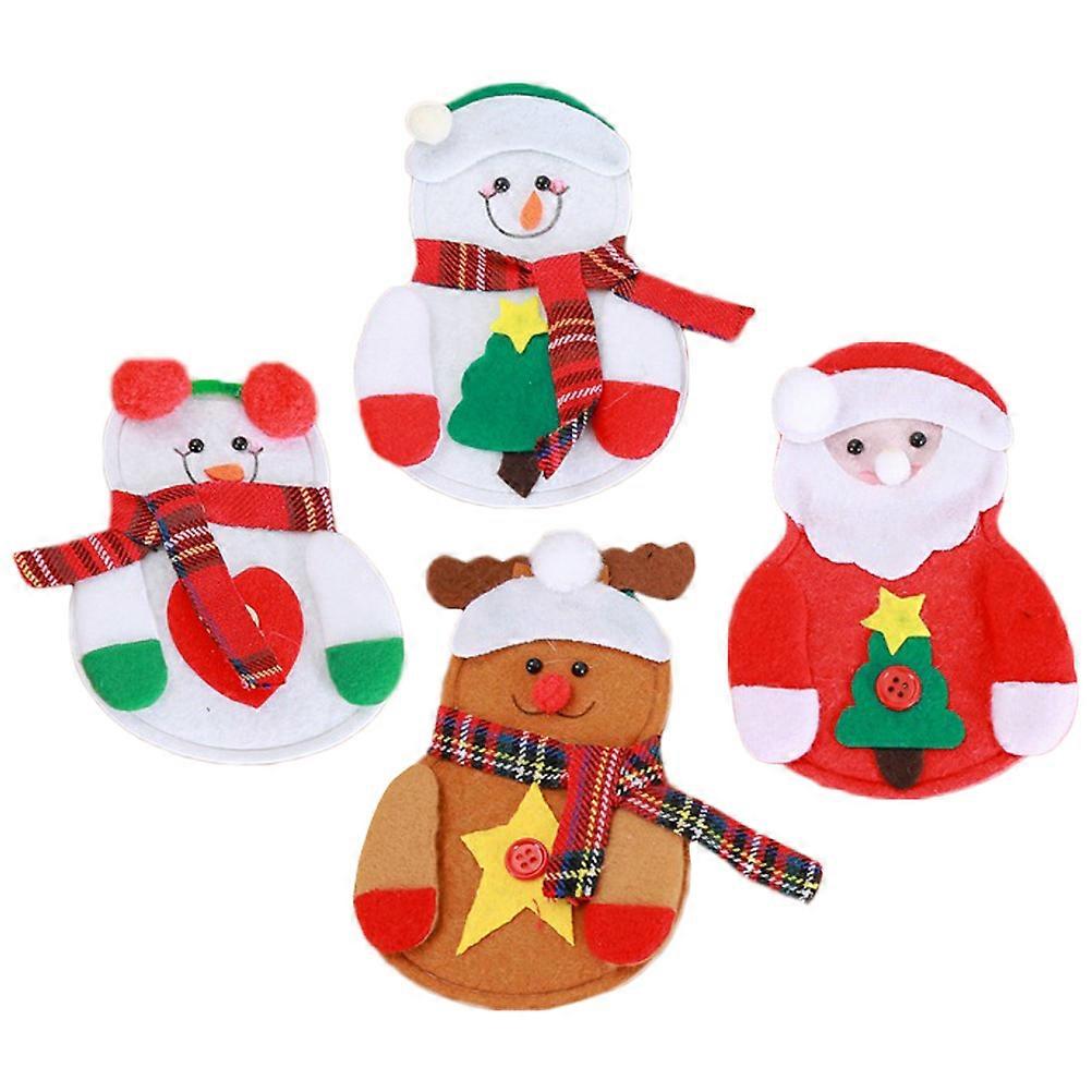 Christmas Cutlery Holder For Party 4Pcs Assorted Color Cartoon Design For Families Holiday Table Decoration