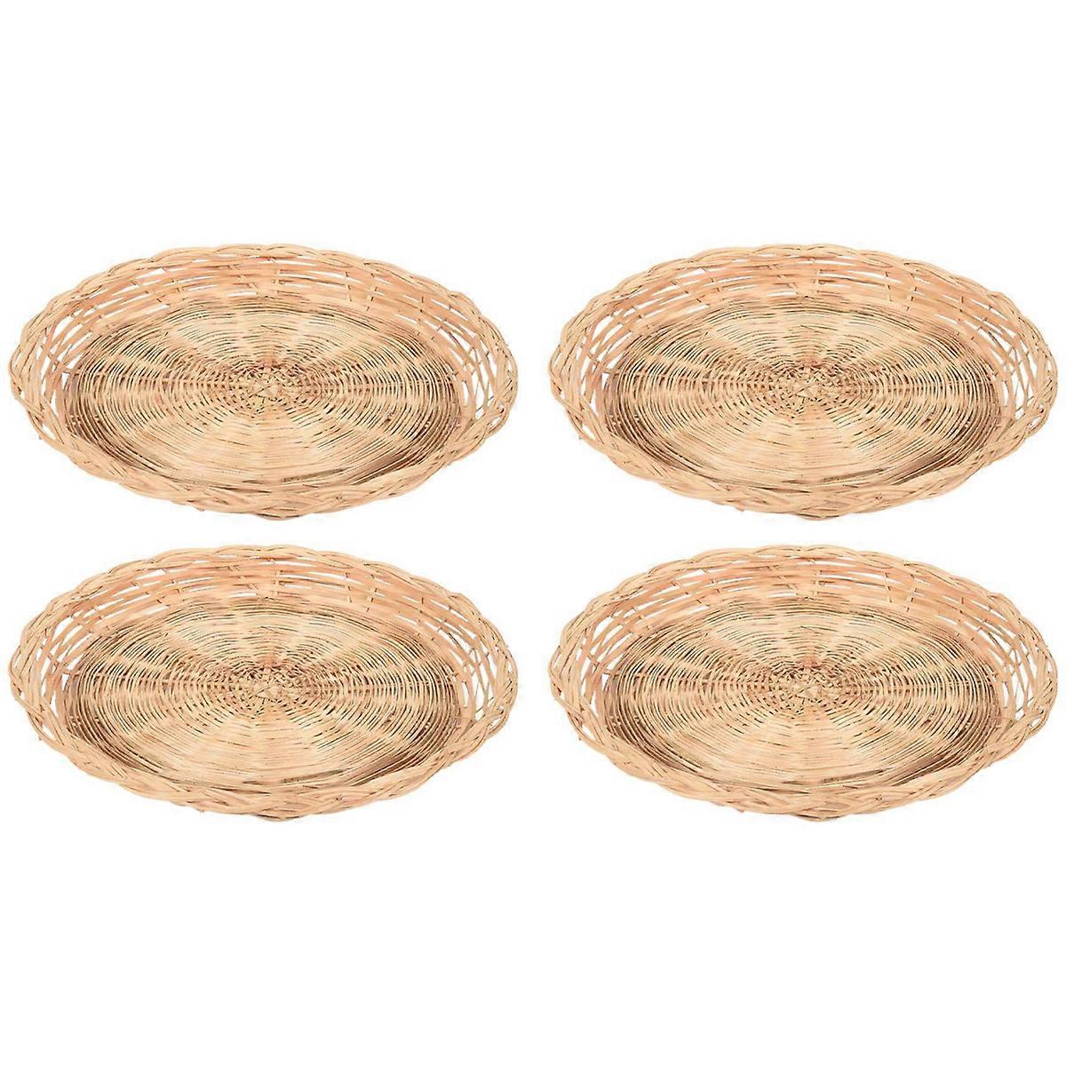 4 Pcs Bamboo Paper Plate Holder-10 Inch Round Woven for Picnic Party
