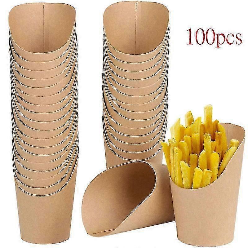100 Pcs Fried Food French Fries Holder 14oz Disposable Slanted Fries Cups Kraft Paper Cups Fast Food Takeaway Packing Boxes