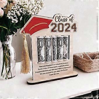 Money Card Holder 2024 Graduation Cash Holder Wooden Congrats Card Money Clip for Home Desktop Decor Party Favors Black