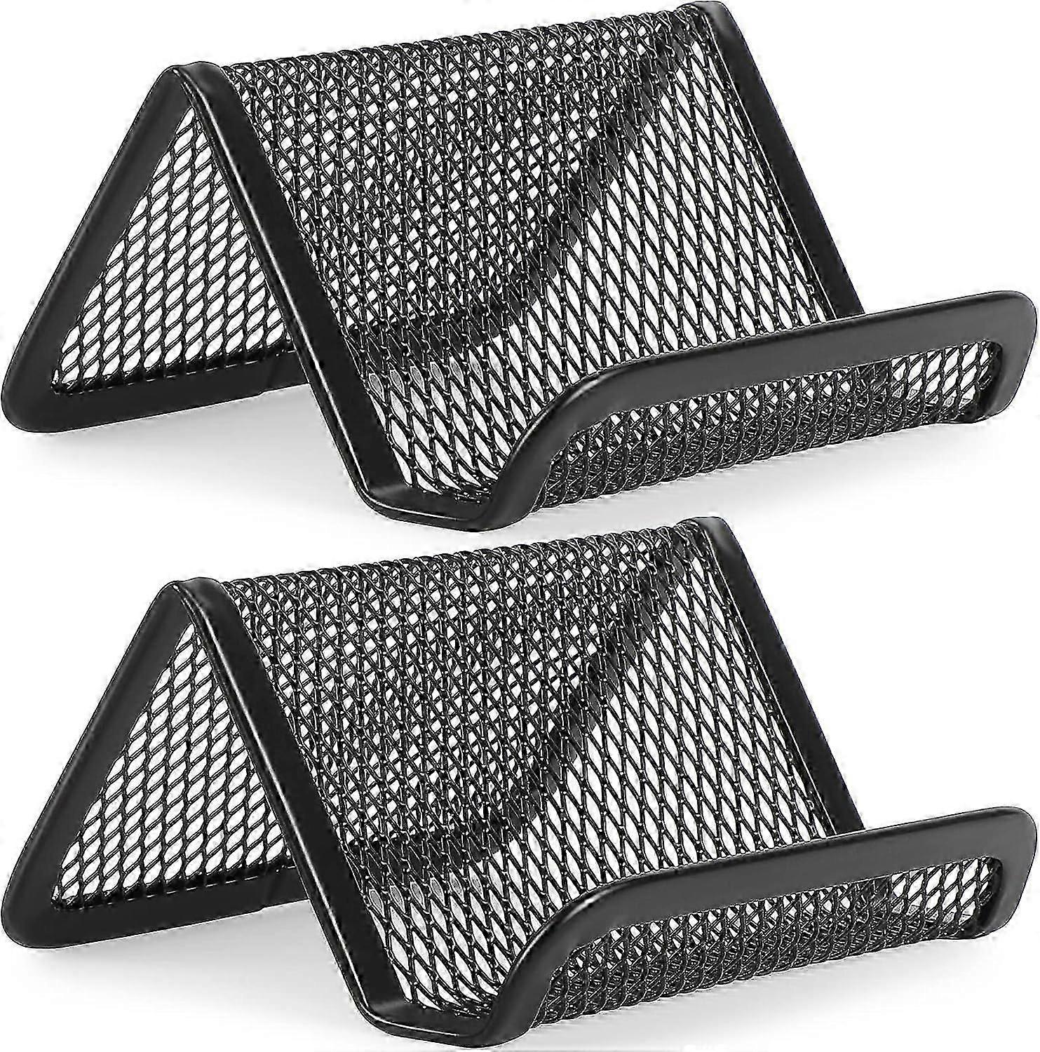 Business Card Holder, Desktop Grid Business Card Holder, Black Metal Business Card Display Holder, Holds 50 Business Cards, 2 Pack Sturdy Office Busin