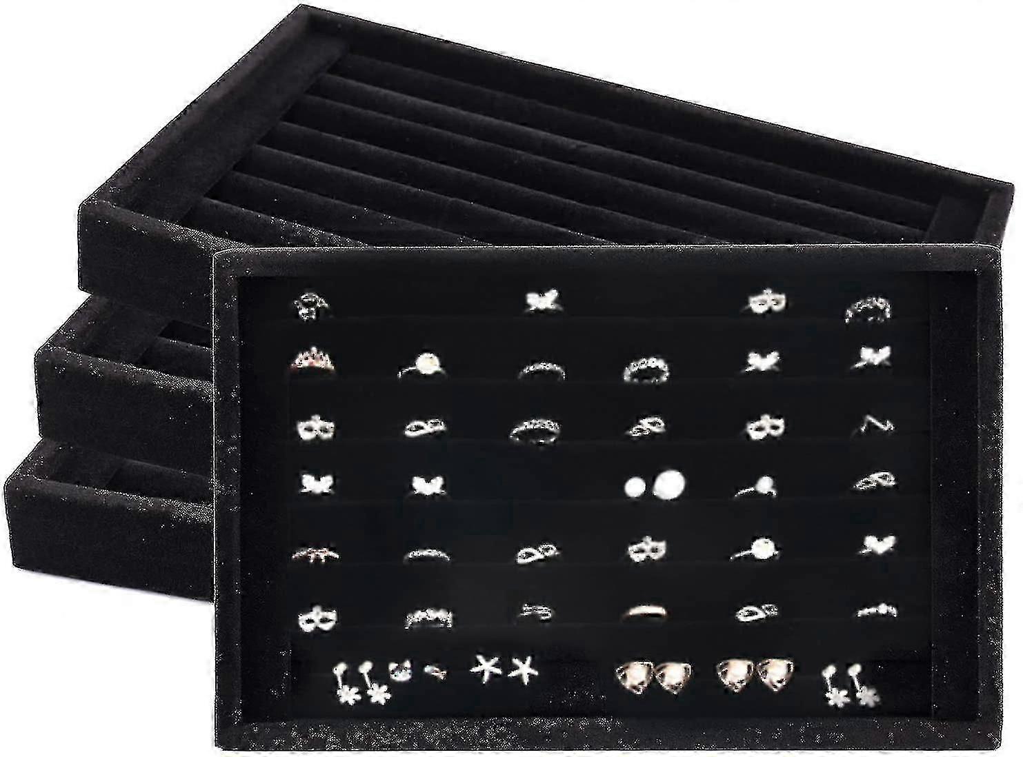 Ring Holder,4 Pack Velvet 7 Slots Ring Earrings Showcase Trays Holder Drawer