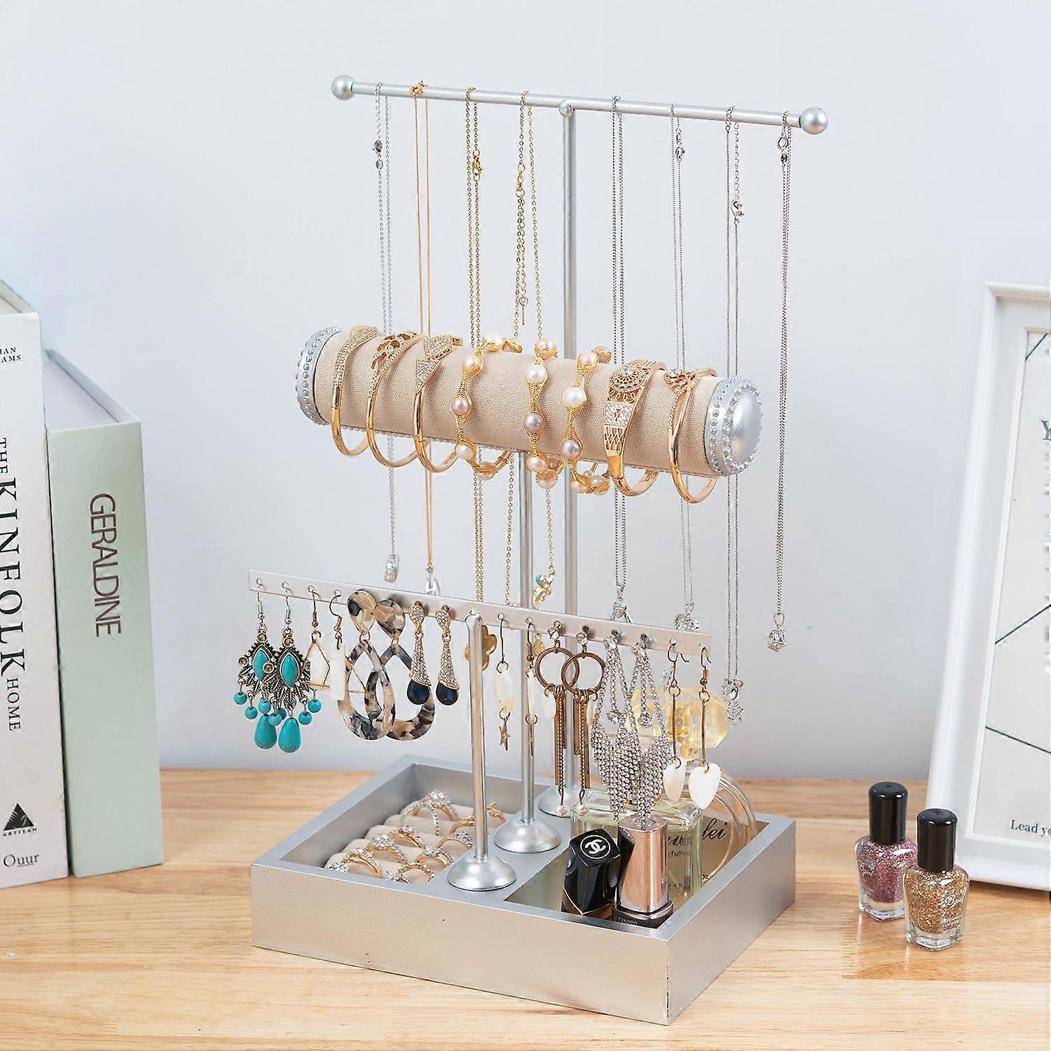 T Shape Jewelry Holder Chain Holder, 3 Tiers Chain Holder With Wooden Base, Detachable, Bracelet Holder, Hairband Ring Organizer