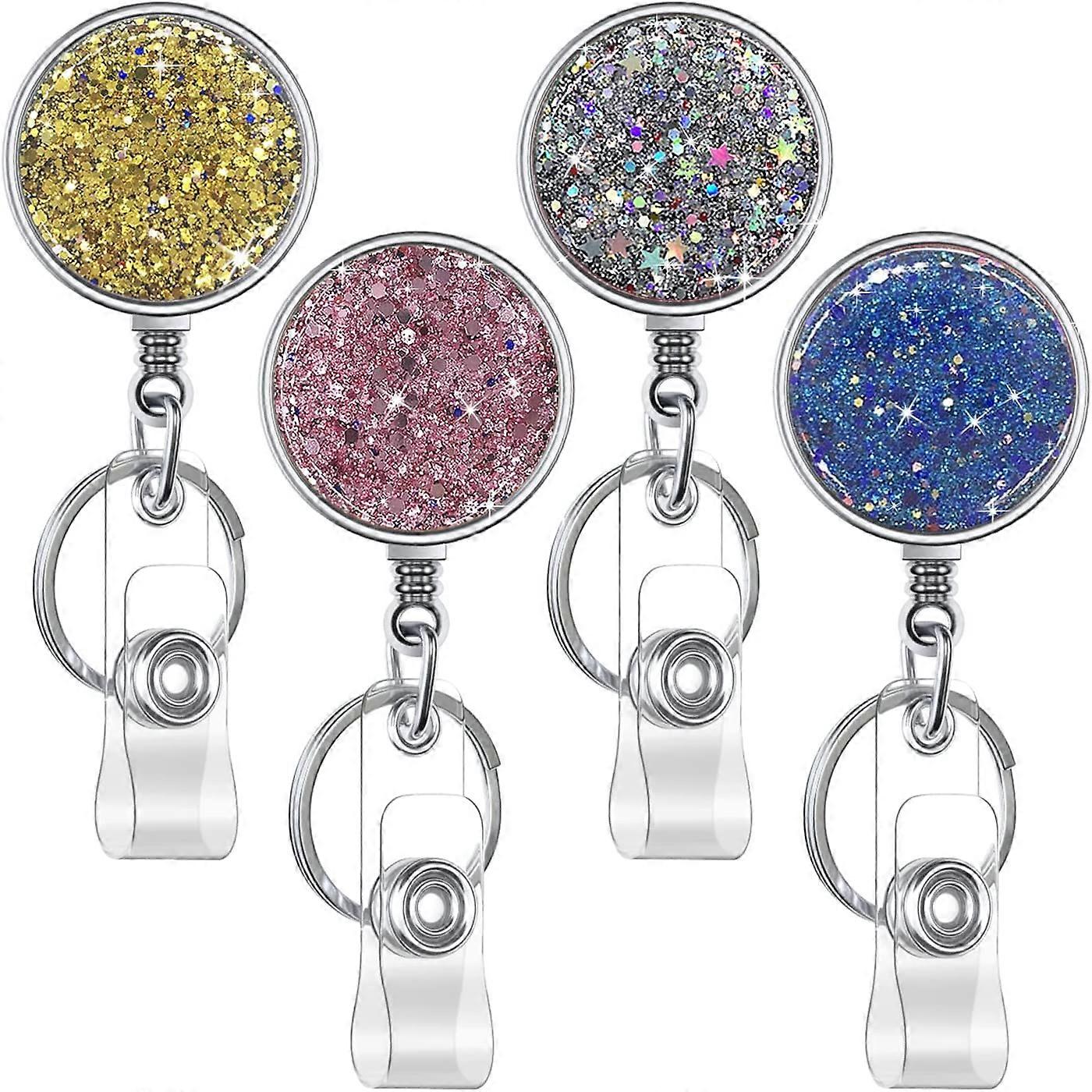 Retractable Badge Holder, Lightweight Plastic Badge Reel Retractable Business Card Holder (4 Pack Gold Silver Pink Blue)