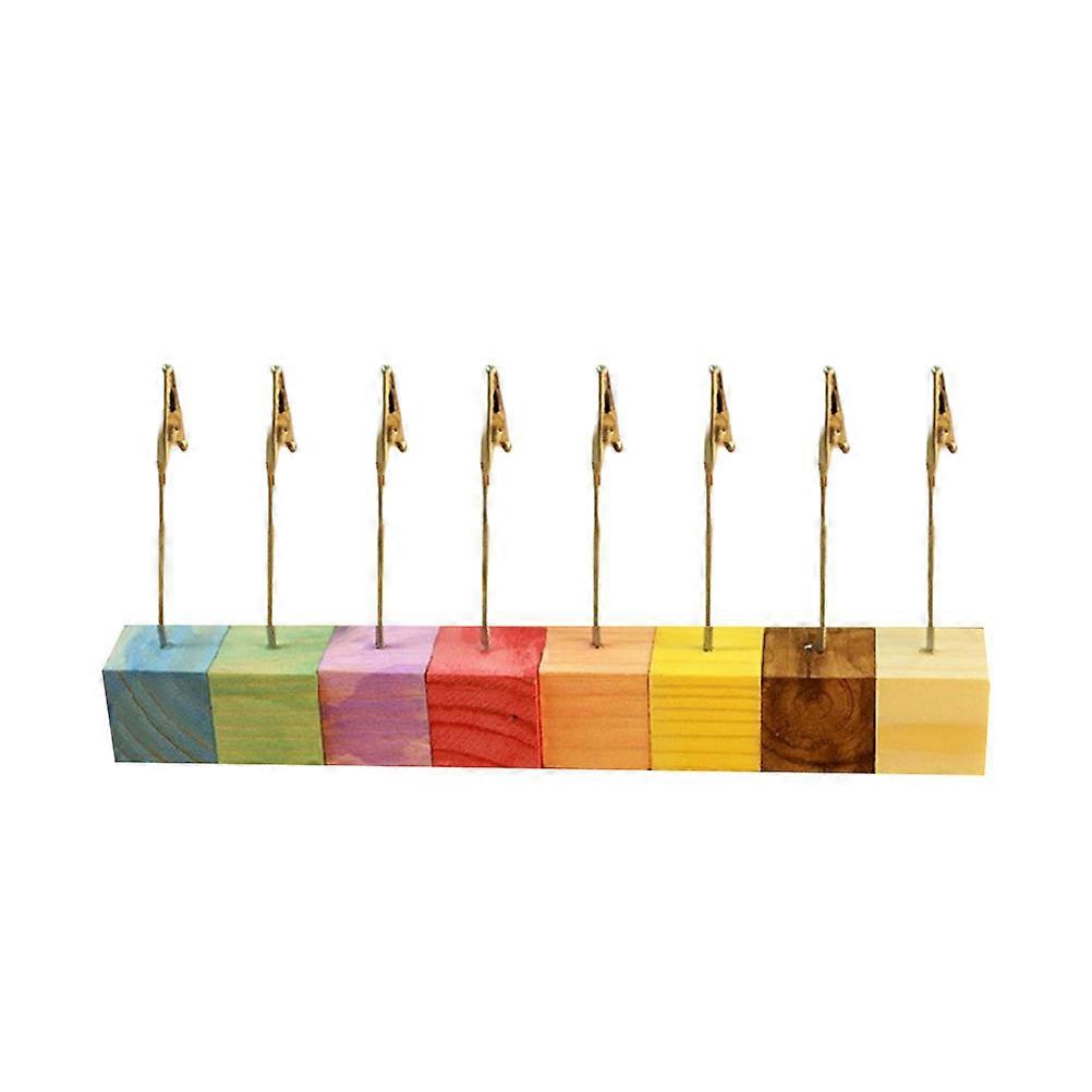 Wood Table Sign Holder Decorative Place Memo Holder Color Wooden Base for Wedding Banquet Hold Paper 8Pcs