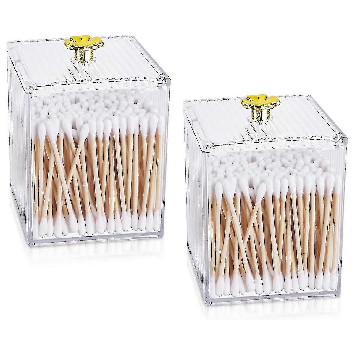 2Pcs Cotton Ball Holder, Q-Tips Holder Clear Modern Bathroom Organizers, Jars with Lids, for Cotton