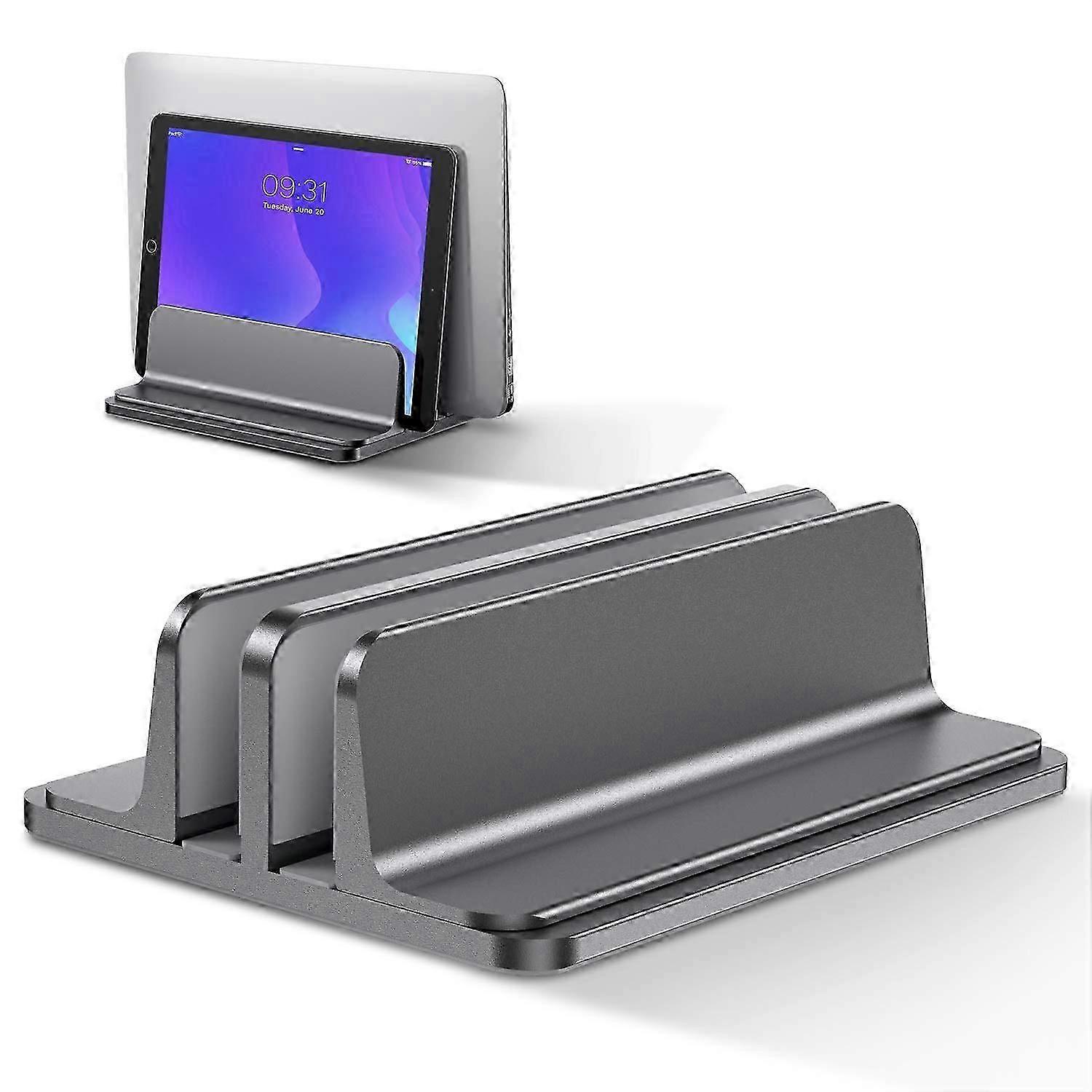 Double Vertical Laptop Stand,Aluminum Alloy Holder Grey