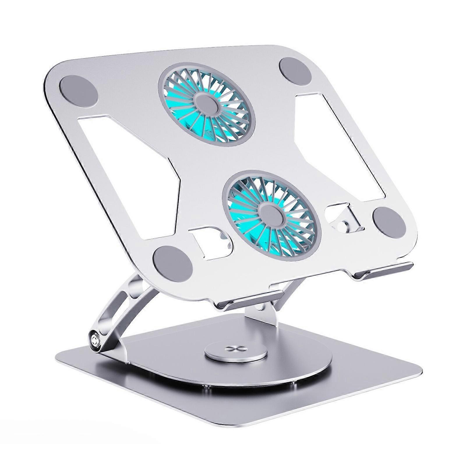 2 Fan Foldable Carbon Steel Laptop Holder Stand Supports Up to 10kg with 360 Rotation for in Office or Home Silver